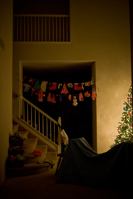 Santa had to cover the presents up with a big blanket. Otherwise, the kids would be able to see their haul as soon as they exited their room upstairs. I’m selfish, and I wanted their reactions on tape. Er, I mean Santa…