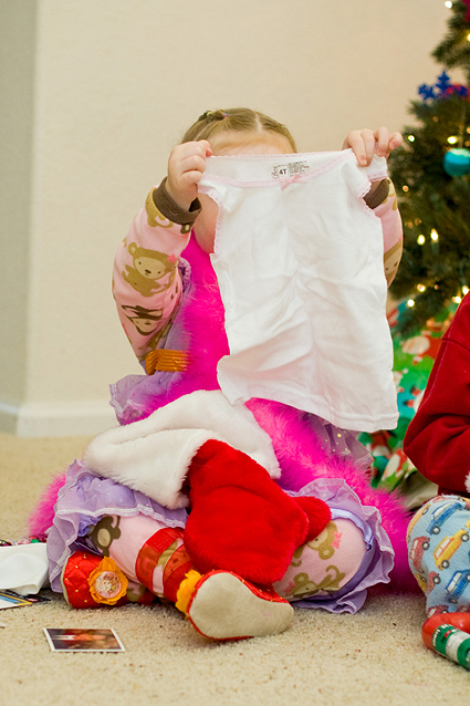 Santa brought us underwear for Christmas? Trust Mrs. Claus Drew, that is “cool kid” underwear you’re holding.